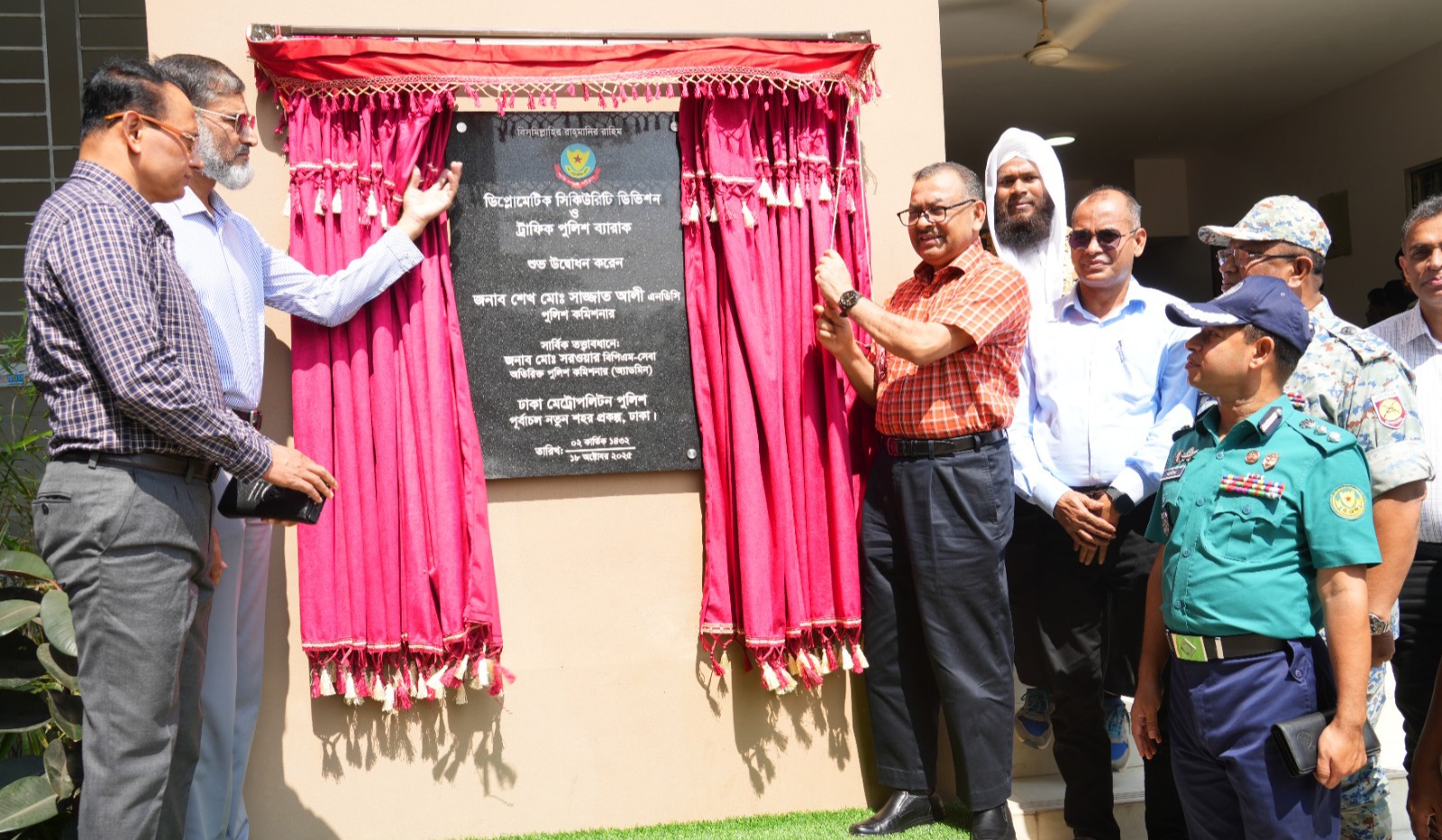 রাজধানীর পূর্বাচল নতুন শহর প্রকল্পে বাংলাদেশ পুলিশের একটি বহুতল ভবনে ঢাকা মেট্রোপলিটন পুলিশের ডিপ্লোম্যাটিক সিকিউরিটি ডিভিশন ও ট্রাফিক ডিভিশন–এর জন্য নির্মিত পুলিশ ব্যারাকের শুভ উদ্বোধন করেছেন শেখ মোঃ সাজ্জাত আলী, এনডিসি।