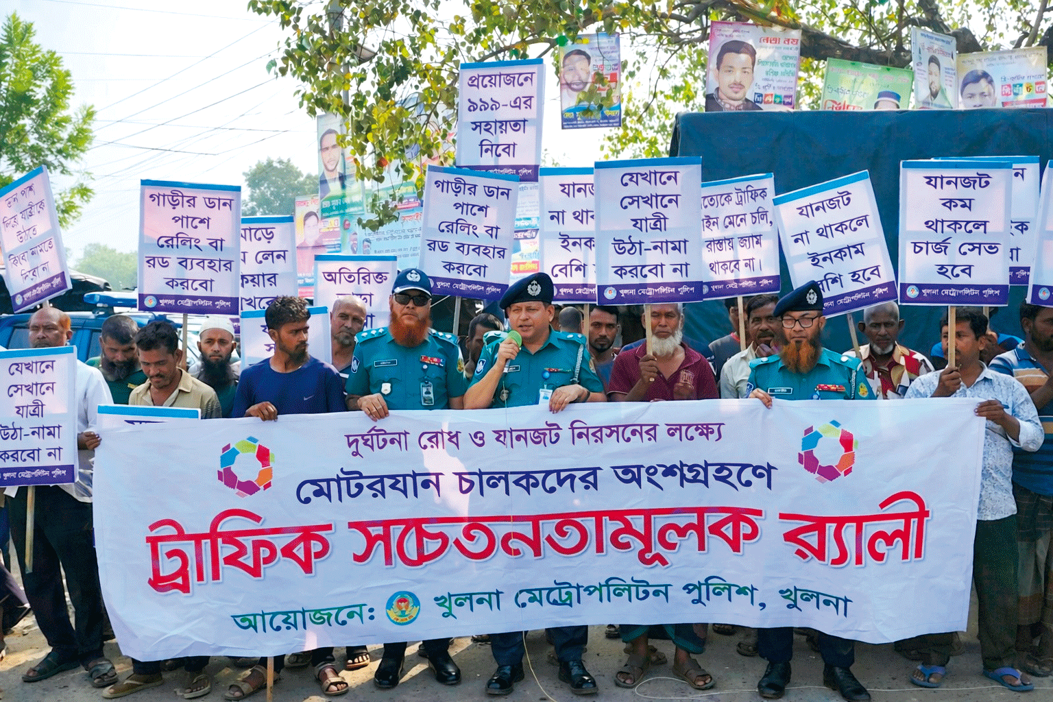 দুর্ঘটনা রোধ ও যানজট নিরসনের লক্ষ্যে খুলনা মেট্রোপলিটন পুলিশের উদ্যোগে গল্লামারী