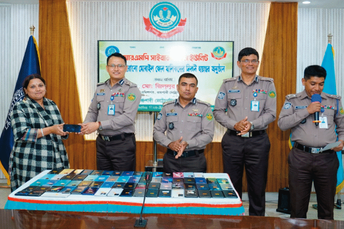 আরএমপির সাইবার ক্রাইম ইউনিটের সহায়তায় হারানো মোবাইল ফোন ফিরে পেলেন প্রকৃত মালিকরা