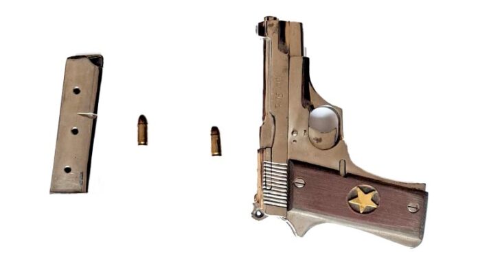 ডিবি পুলিশের উপস্থিতি টের পেয়ে ছিনতাইকারীরা পালিয়ে যাওয়ার সময় ঐখানে অবস্থিত আওয়ামী লীগের অফিসের সামনে কিছু একটা ফেলে দিয়ে আম বাগানের ভিতর দিয়ে দৌড়ে পালিয়ে যায়। ডিবি পুলিশের টিম স্থানীয় নাইট গার্ডদের সাথে নিয়ে আওয়ামী লীগ অফিসের পূর্ব পার্শ্বে ফাঁকা স্থান তল্লাশি করে পরিত্যক্ত অবস্থায় একটি বিদেশী পিস্তল এবং ০২ (দুই) রাউন্ড গুলিসহ ১টি ম্যাগাজিন উদ্ধার করে। পিস্তলের গায়ে ইংরেজিতে “MADE IN USA” লেখা রয়েছে।