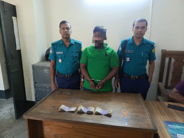 ঢাকার কল্যাণপুর বাসস্ট্যান্ড এলাকা থেকে ছিনতাইকৃত নগদ টাকা ও ছুরিসহ এক ছিনতাইকারীকে গ্রেফতার করেছে মিরপুর মডেল থানা পুলিশ। গ্রেফতারকৃত ব্যক্তি নুর মোহাম্মদ খান লিটু (৩০)। তার হেফাজত থেকে ছিনতাইকৃত নগদ ২২ হাজার টাকা এবং একটি ছুরি উদ্ধার করা হয়।