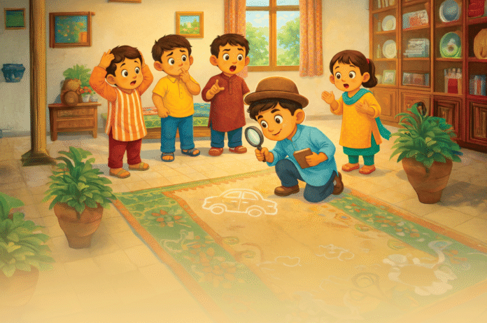 রবিনের ঘর থেকে তার সবচেয়ে পছন্দের খেলনাটা উধাও। চুরিটা হয় ঠিক তখনই, যখন রবিন তার দাদুর কাছে গল্প শুনতে যায়। গল্প শুনে ফিরে এসে নিজের রুমে ঢুকেই সে দেখে, তার সবচেয়ে প্রিয় খেলনা গাড়িটা আর নেই। ঘরে তখন ছিল তার খেলার সাথীরা, রনি, মিতু আর রাজু। খেলনাটা না দেখে রবিন কান্নায় ভেঙে পড়ে, অস্থির হয়ে ওঠে। তখনই ডাক পড়ে খুদে গোয়েন্দা ডিটেকটিভ ডুডুর।